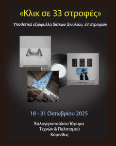 Υποθετικά εξώφυλλα δίσκων βινυλίου, 33 στροφών. Έκθεση φωτογραφίας του Άγγελου Νικολόπουλου. 18-31 Οκτωβρίου 2025 Καλογεροπούλειο Ίδρυμα Τεχνών & Πολιτισμού –